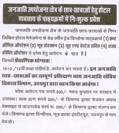 | Food & Beverage Service | 6 Weeks | Rs. 1500/- |